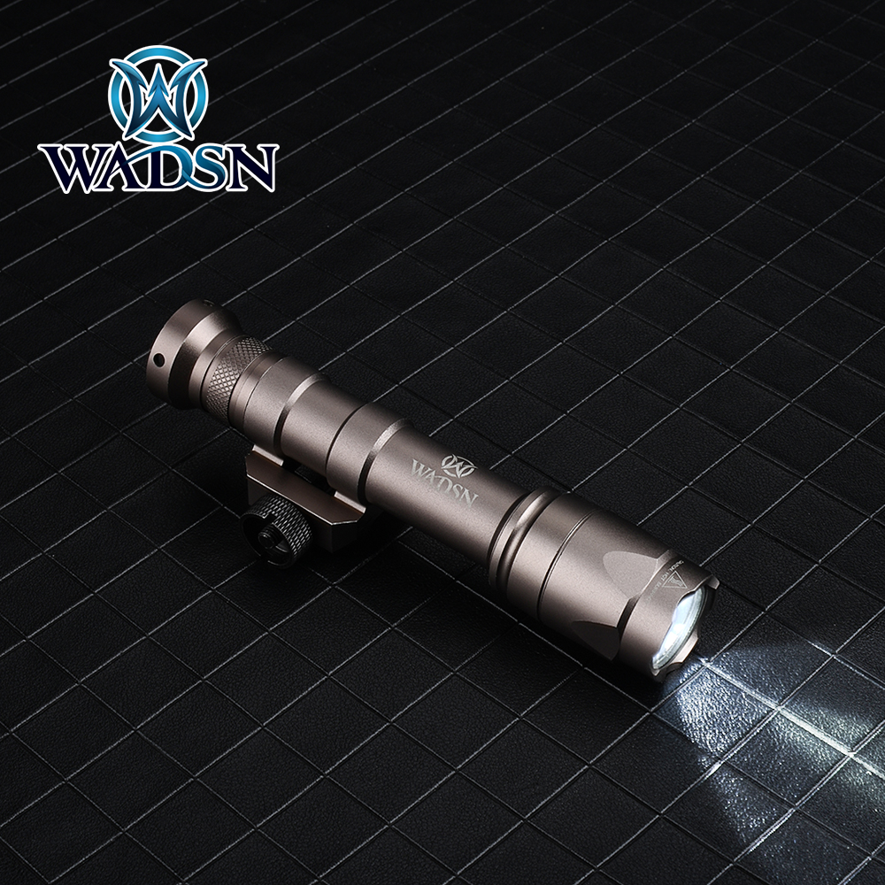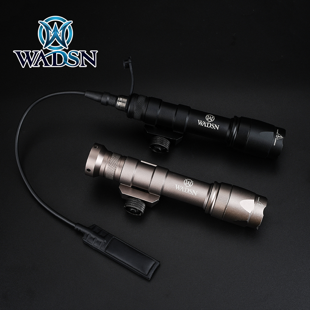 WADSN Airsoft Surefir M600 M600C Scout Flashlight 340Lumens LED Tatical Hunting Weapon Light 1.Remote Pressure Switch Momentary On / Click Switch Constant On 2.Powered by 2x CR123A battery(not inculde) 3.Length : approx 135mm 4. M600c 340 lumens 5.COLOR: BK/DE 6.Screw mout For 20mm Picatinny Rail Package Includes: 1*WEX072 Rifle Flashlight 1*Pushbutton Switch