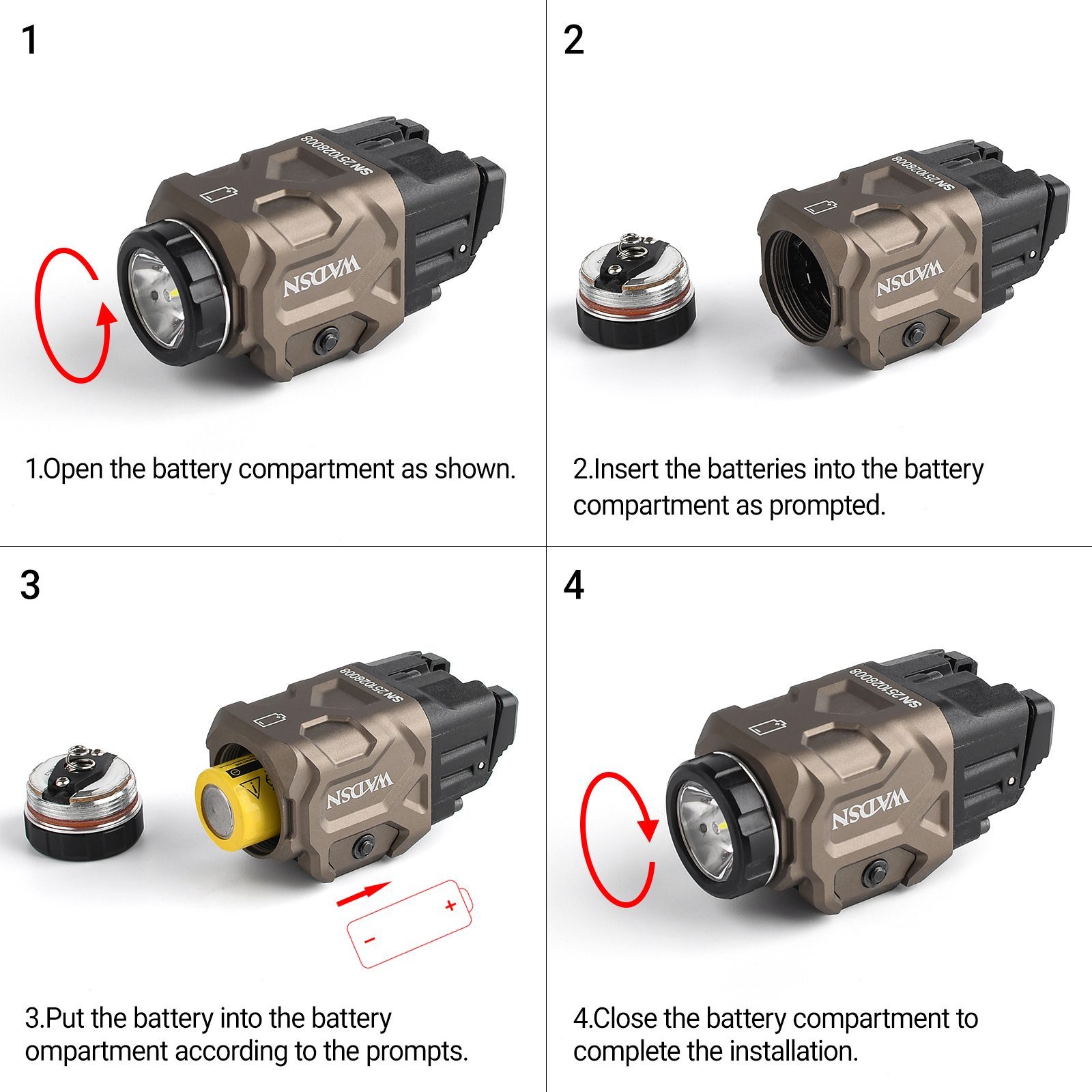 6.Powered by 1pcs CR123A or 16340 battery (The light head must be tightened to work properly)