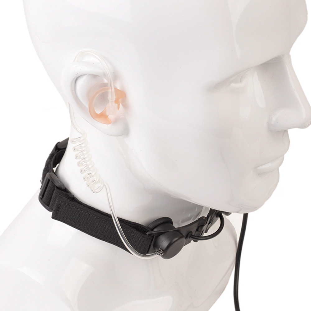 Transparent sound tube transports the receive signal from the neck mounted speaker to your ear. The break-away elastic strap